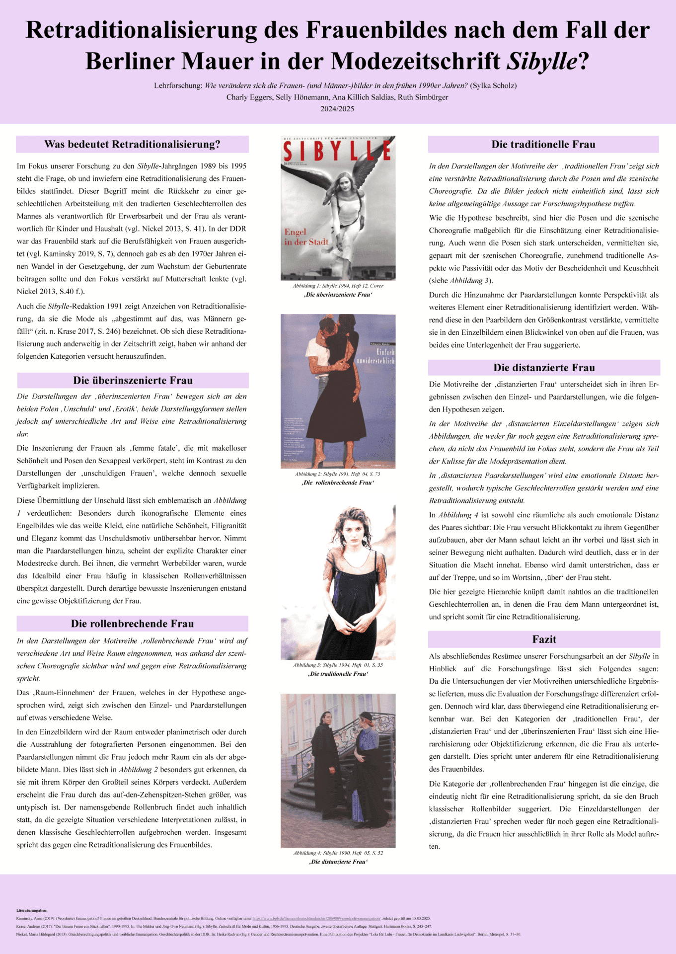 - Retraditionalisierung des Frauenbildes nach dem Fall der Berliner Mauer in der Modezeitschrift Sibylle (eine Arbeit von Charlotte Eggers, Selly Hönemann, Ana Killich Saldias und Ruth Simbürger): Downloadpng, 2 mb